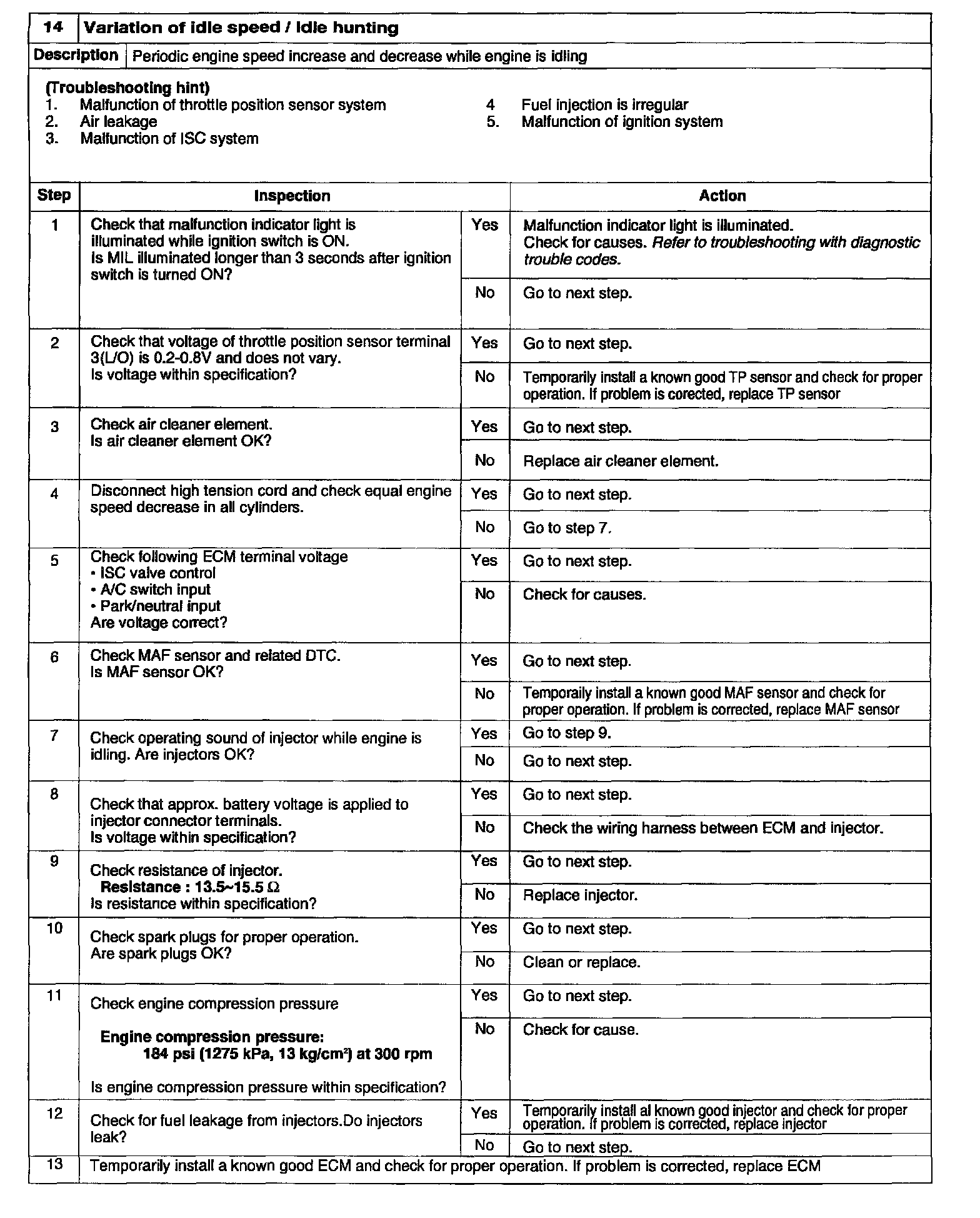 14 - Variation of Idle Speed/Idle Hunting