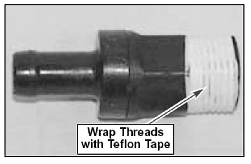 Some Rios may exhibit oil seepage from the threads of the PCV valve. KMA recommends using Teflon tape on PCV valve threads when servicing. Also make sure valve is threaded snugly into cover while being careful not to overtorque.