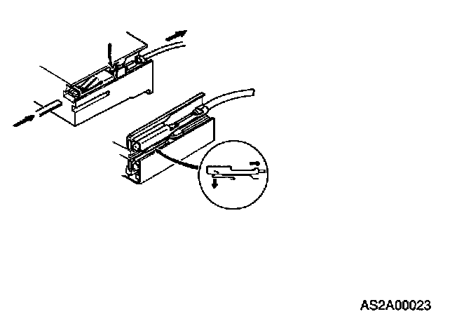 Replacement of terminalsUse appropriate tools to remove terminal as shown. When installing the terminal, insert it until it locks securely.