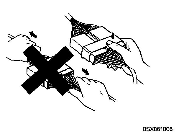 Removal of connector1. Never pull on the wiring harness when disconnecting connectors.