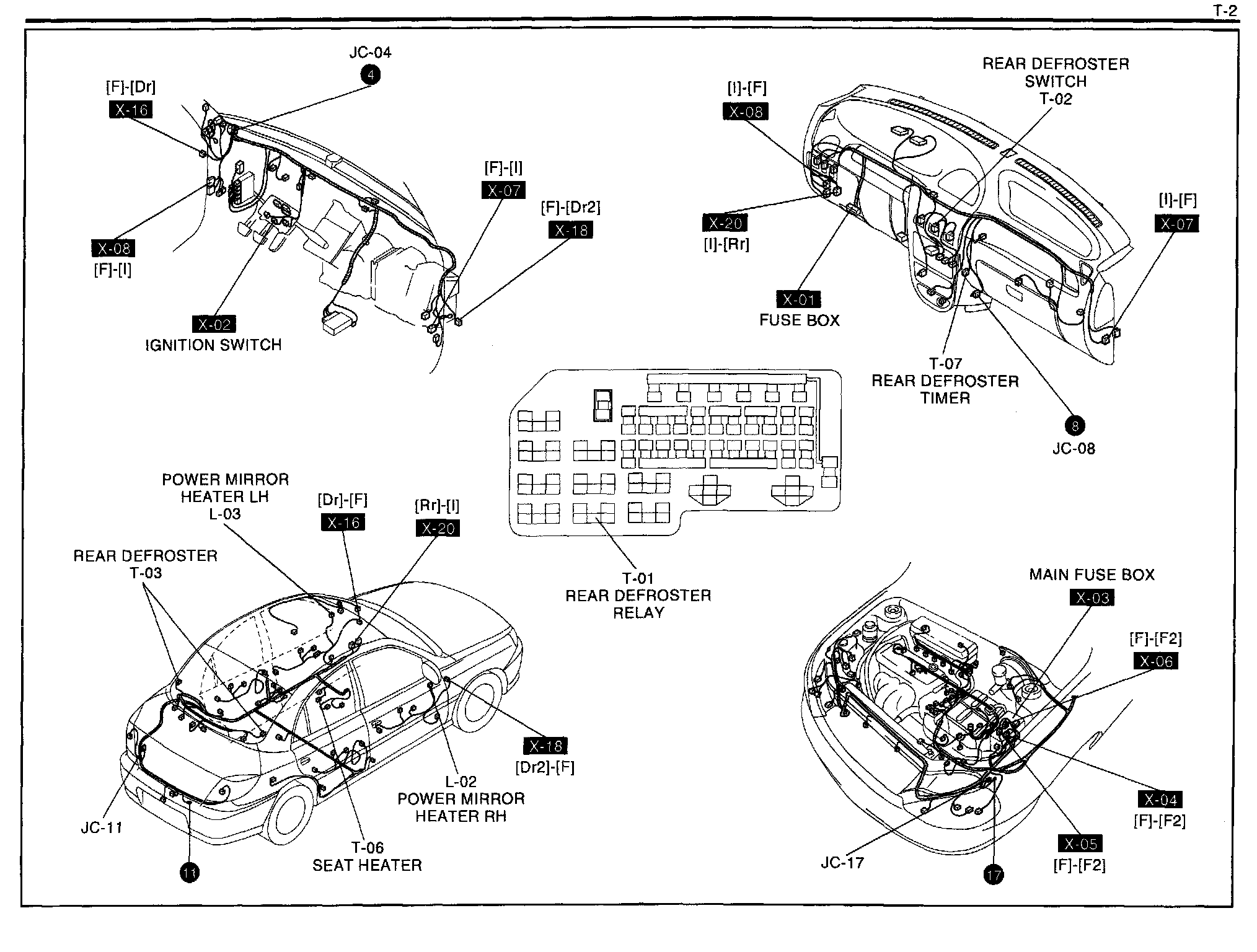 T-2 - Rear Defroster Timer Harness/Connector Symbols: