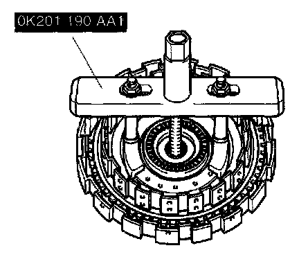 6. Install SST (OK201 190 AA1) in coasting clutch drum as shown.