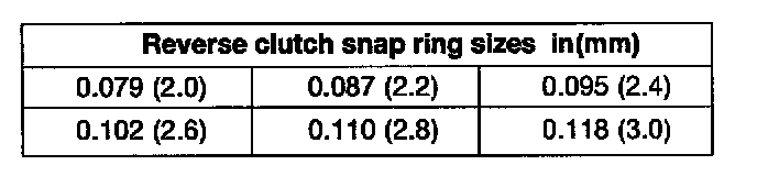 Reverse clutch clearance: 0.035 - 0.047 inch (0.9 - 1.2 mm)
