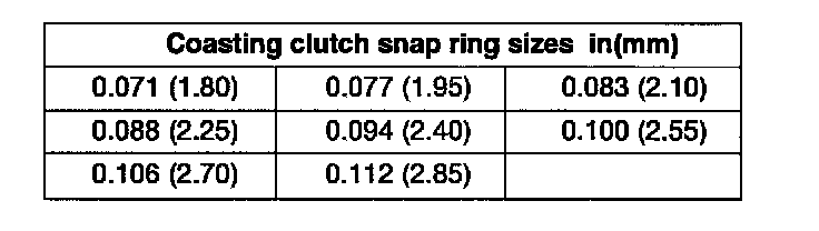 Coasting clutch clearance: 0.039 - 0.048 inch (1.0 - 1.2 mm)