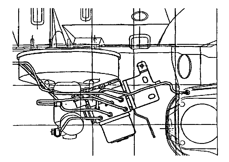 4. Disconnect the six brake lines (2 inlet and 4 outlet) using a flare nut wrench. Be prepared to catch escaping brake fluid. Temporarily seal open brake lines with plastic caps or equivalent.