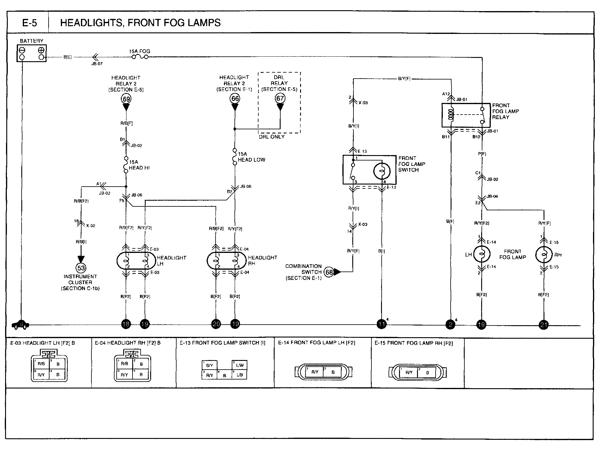 E-5 - Headlights, Front Fog Lamps Circuit: