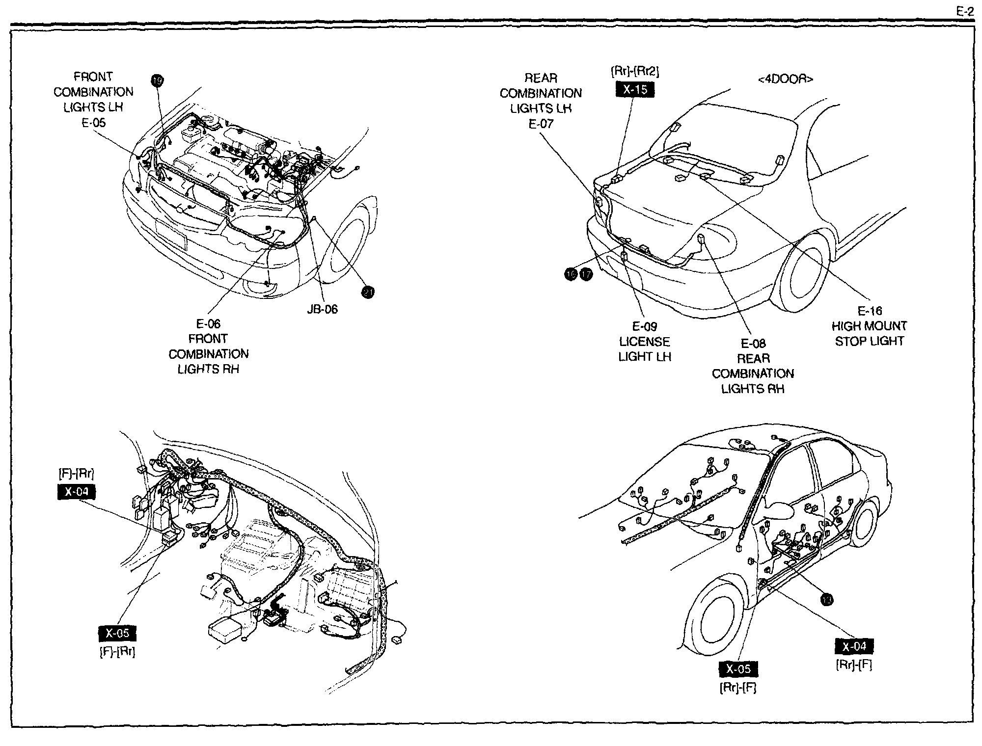 E-2 - Back-up Lights, License Lights, Tail Lights, Stop Lights, Position Lights, High Mount Stop Lights Harness / Connectors Symbols: