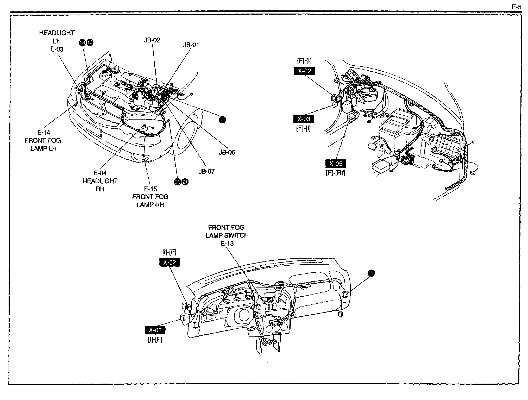 E-5 - Headlights, Front Fog Lamps Harness / Connectors Symbols: