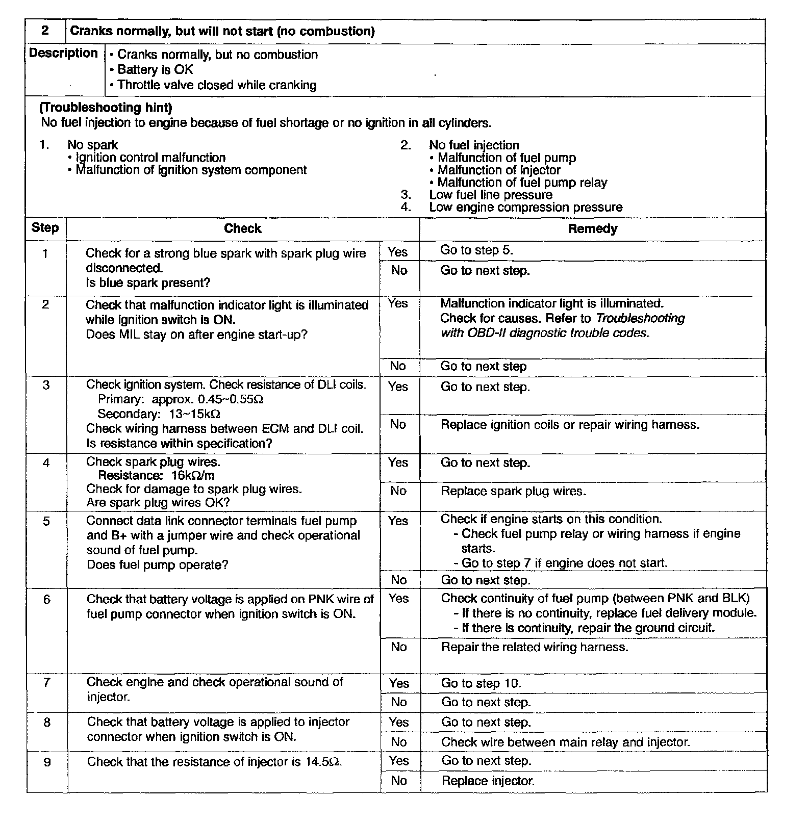 2 - Will Not Start, No Combustion