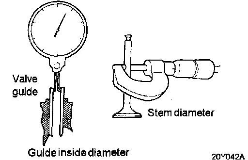 Check the valve stem-to-guide clearance. If the clearance exceeds the service limit, replace the valve guide with anew oversize guide.