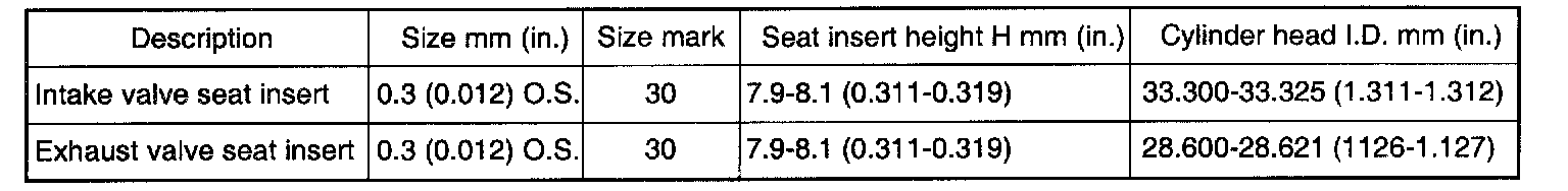 3. Heat the cylinder head to about 250°C (480°F) and press an oversize seat insert fit for the insert bore in the cylinder head at normal temperature.
