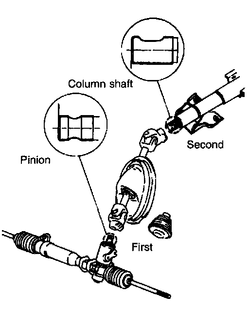 NOTE: When installing, secure the U-joint to the gear box first, then to the steering column shaft.