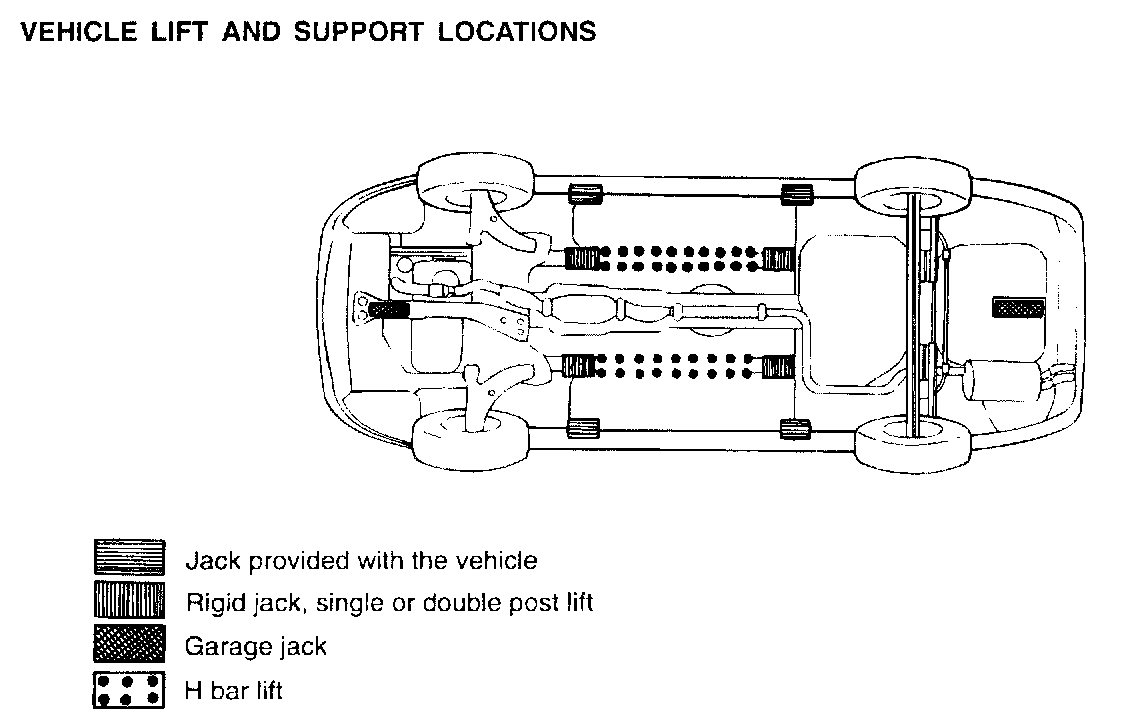 3. Never attempt to position a floor jack on any part of the vehicle underbody.