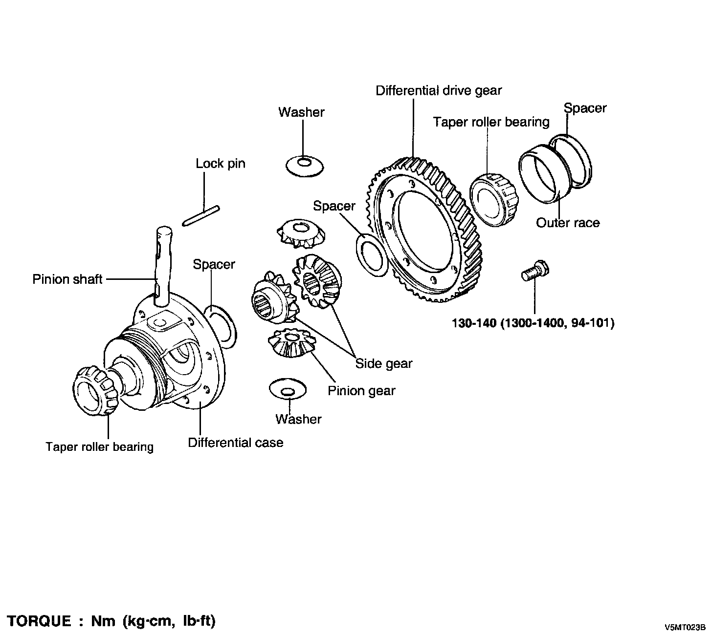 6. Remove the pinion gears, washers, side gear and spacers.