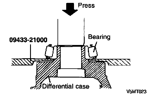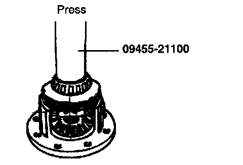 7. Install the tapered roller bearings on both sides of the differential case using the special tool (09455-21100).