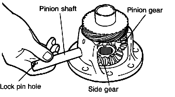 2. Set the washer on the back of each pinion and insert the two pinions to specified position while engaging them with the side gears by turning them.
