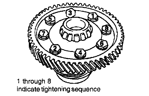 2. Remove the differential drive retaining bolts and remove the differential drive gear from the case.
