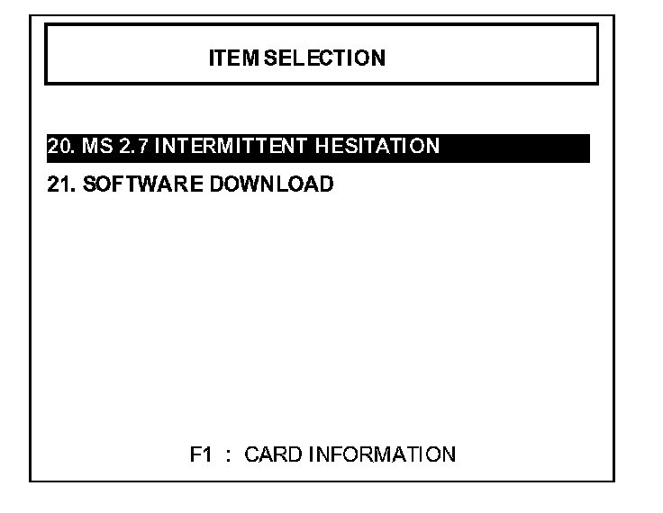 3. Select Option "20. MS 2.7 INTERMITTENT HESITATION" and press ENTER.