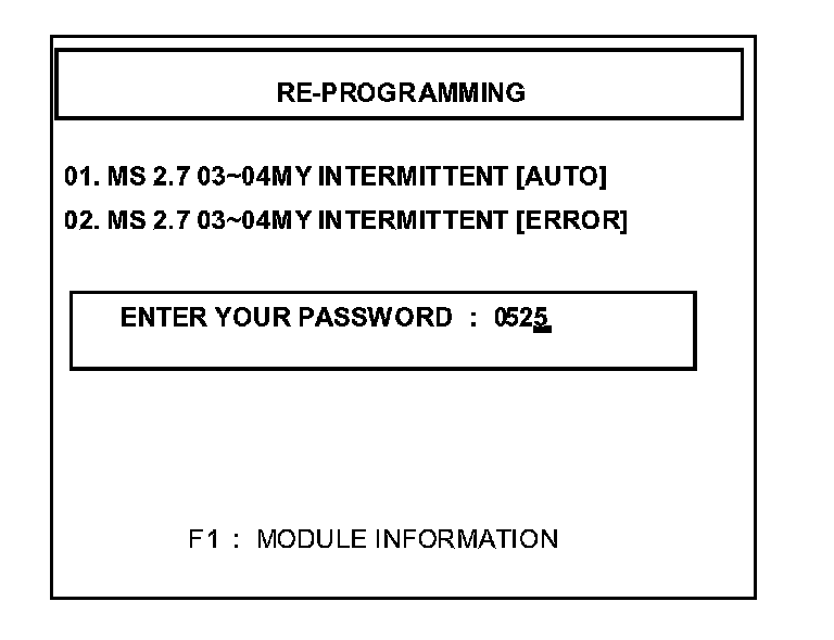 7. Select Option "01. MS 2.7 03~04MY INTERMITTENT [AUTO] and press ENTER.