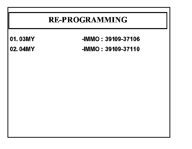 5. "REPROGRAM ERROR PLEASE CHECK SYSTEM" - In this case, you must reprogram manually by selecting menu Option "02. MS 2.7 03~04MY INTERMITTENT HESITATION [ERROR]".
