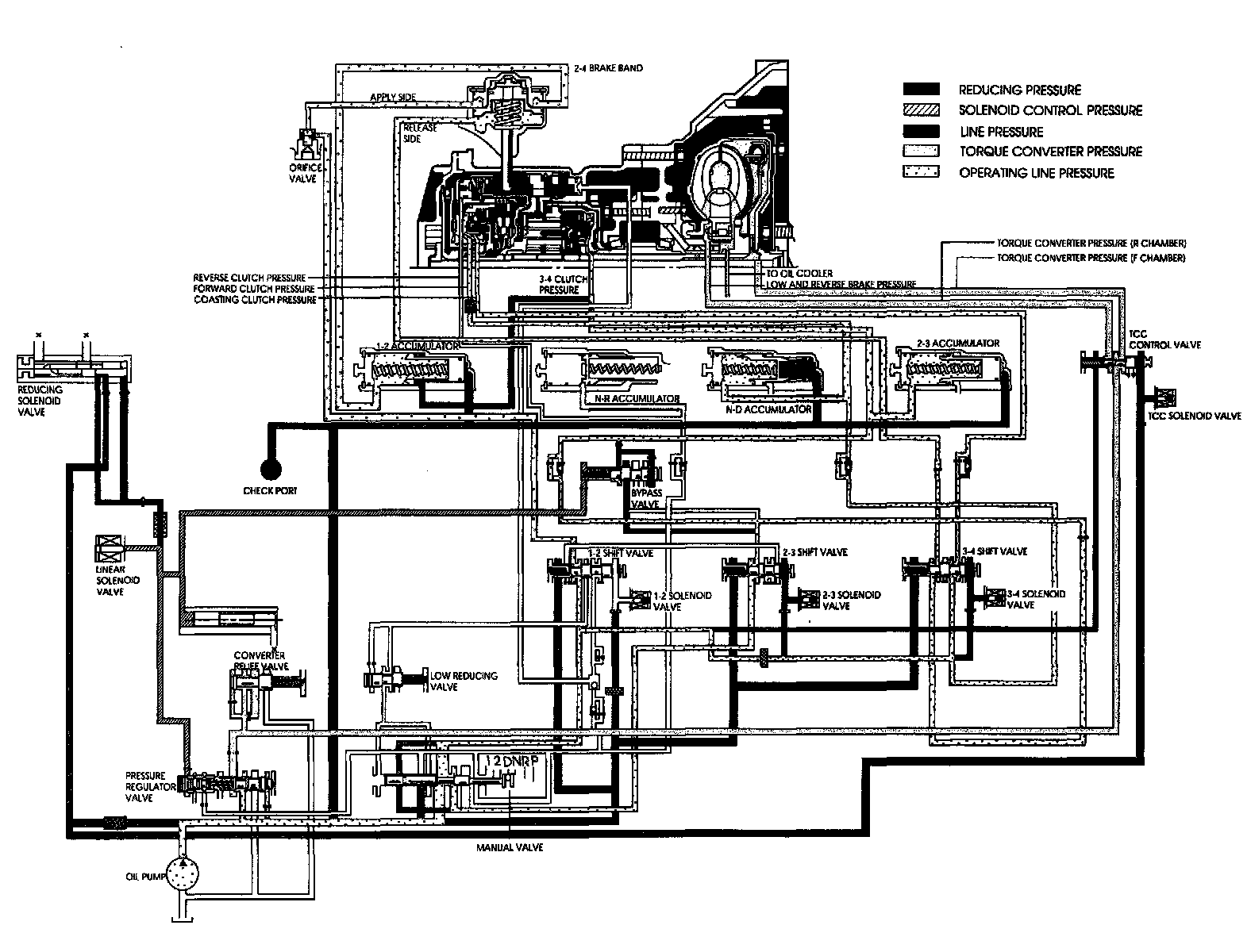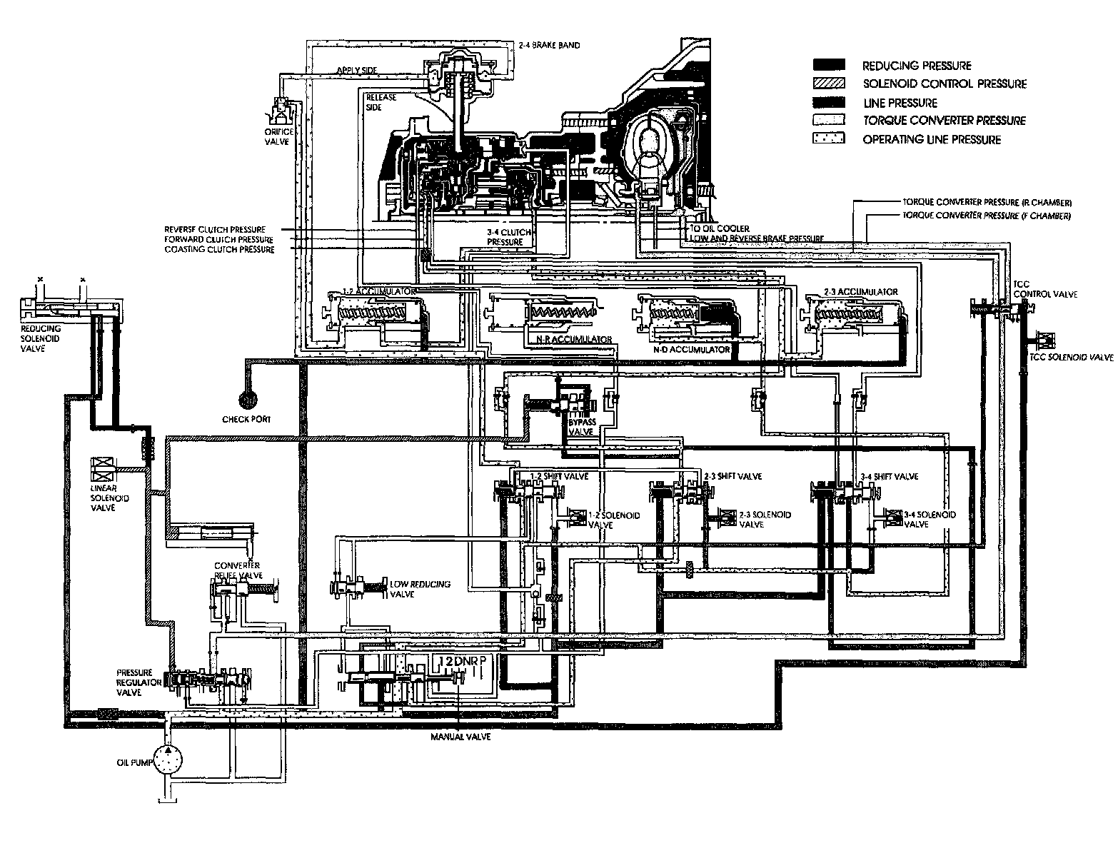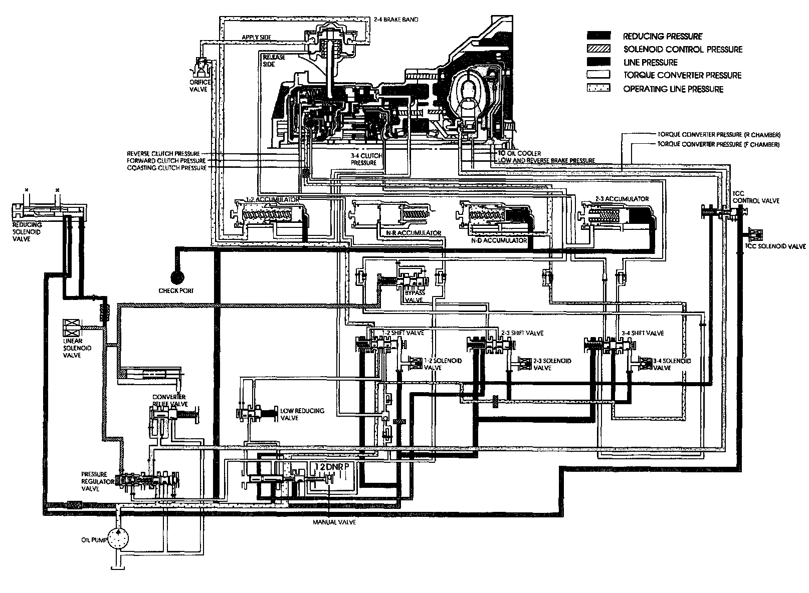 HYDRAULIC CIRCUIT (D RANGE: O/D GEAR TORQUE CONVERTER CLUTCH ON):