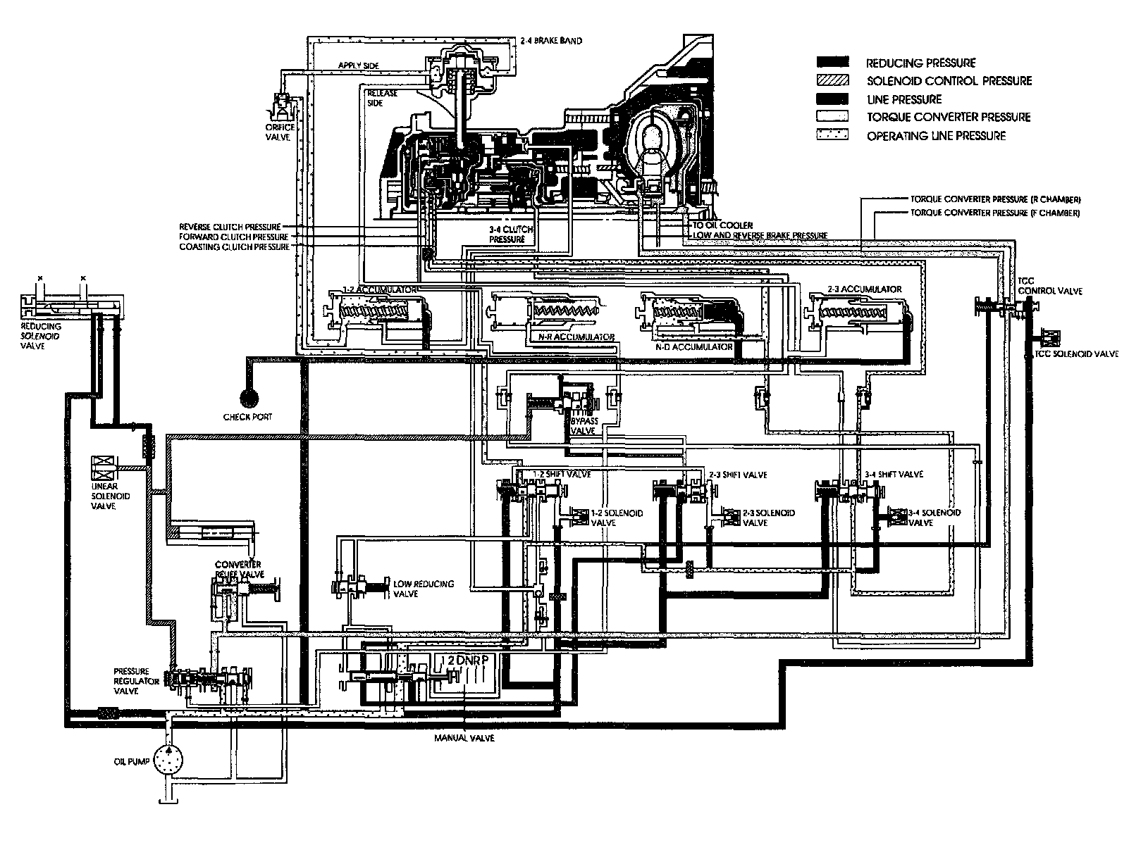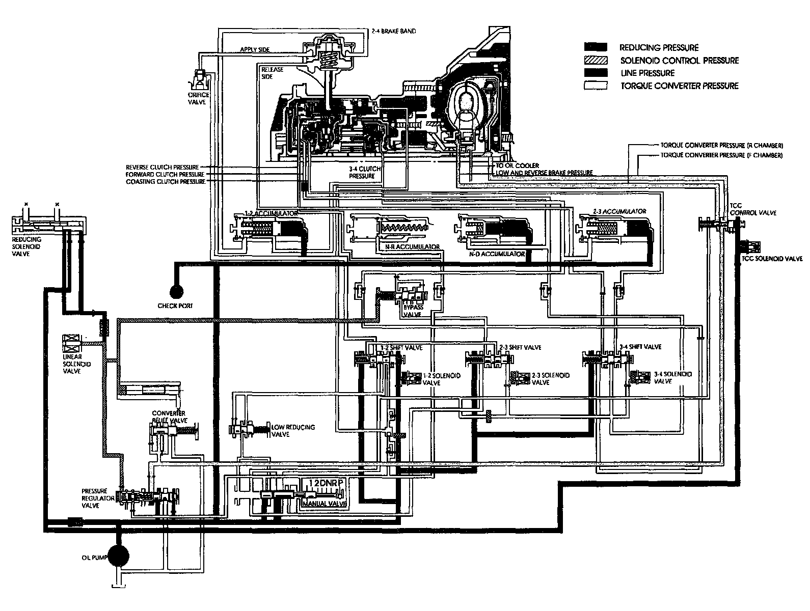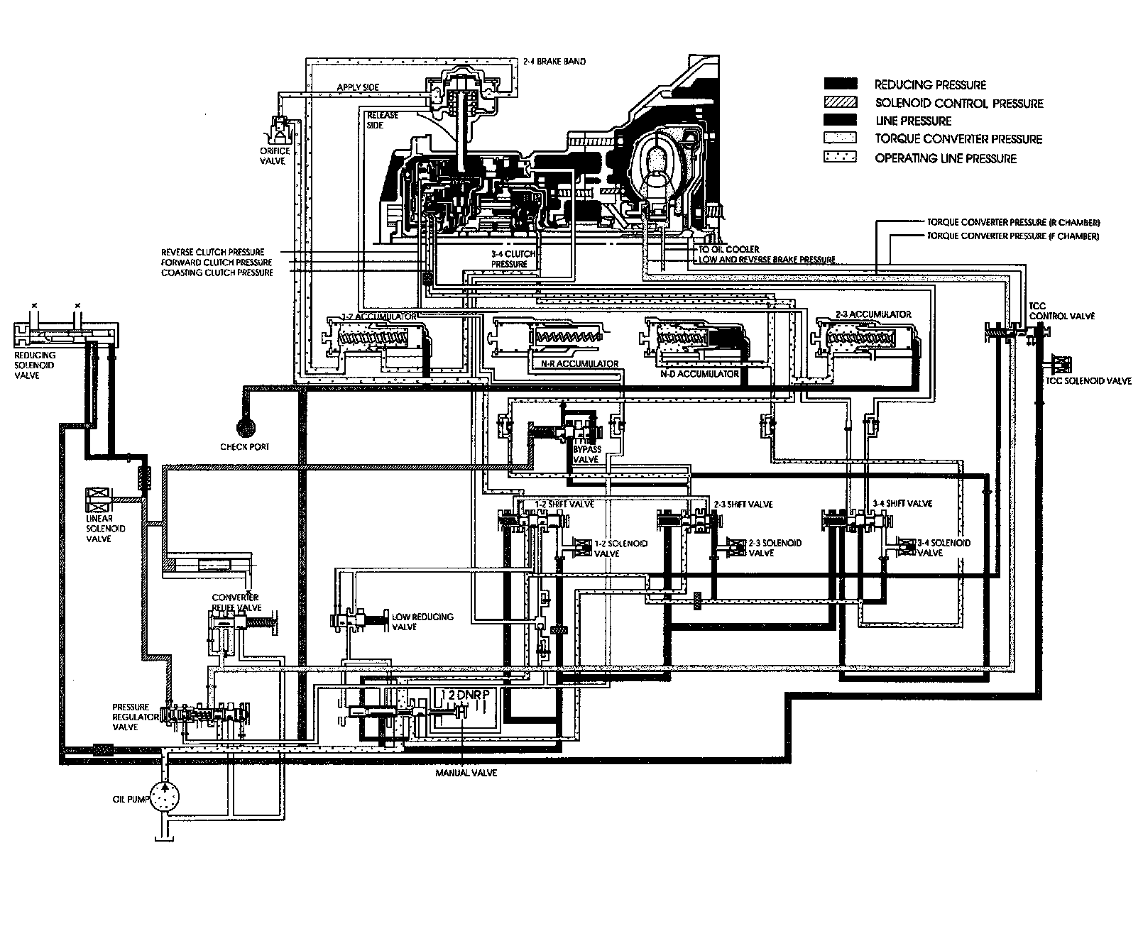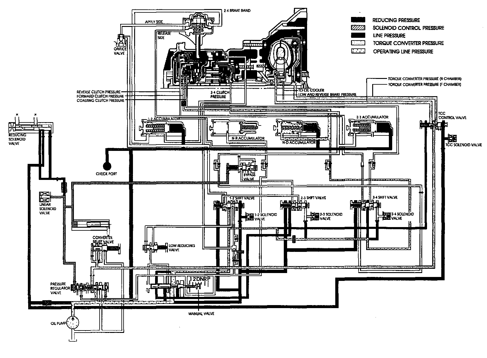 HYDRAULIC CIRCUIT (D RANGE: O/D GEAR TORQUE CONVERTER CLUTCH ON):