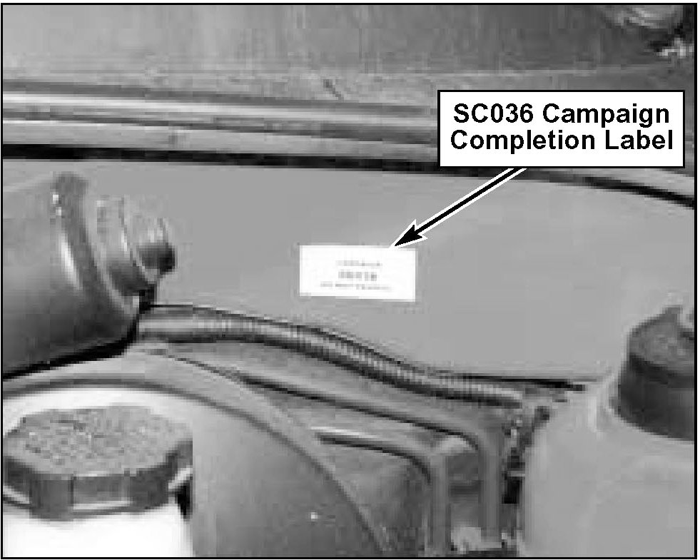 1. Open hood and check for SC036 Campaign Completion Label on bulkhead above master cylinder.