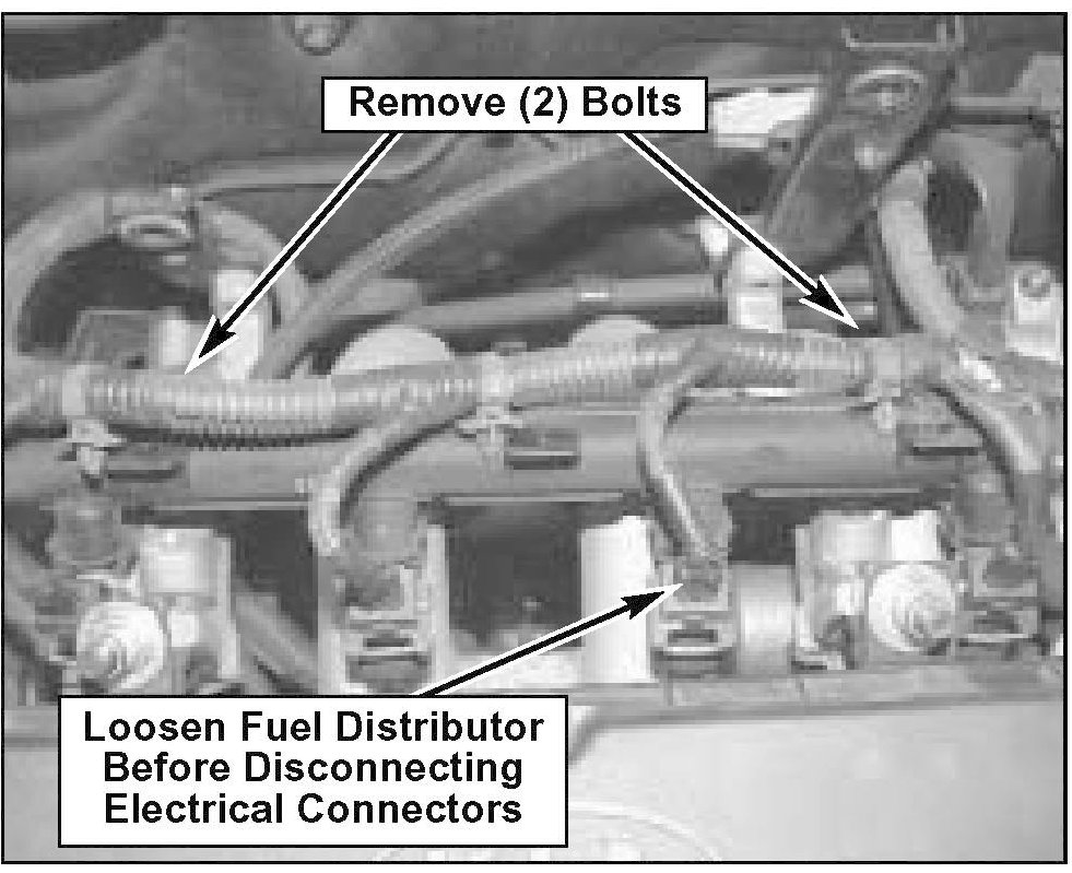 18. Install fuel distributor retaining bolts, torque to 15-17 lb.ft. (20-23 Nm).