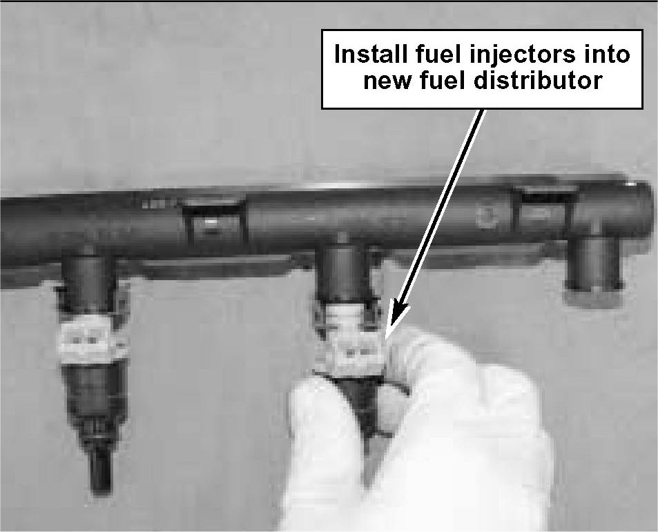 16. Lubricate upper "0" rings with clean engine oil and install injectors into new fuel distributor.