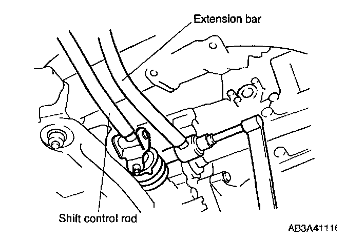 1. Install the extension bar to the floor, and then onto the transaxle. Tighten the extension bar nut at the transaxle.