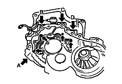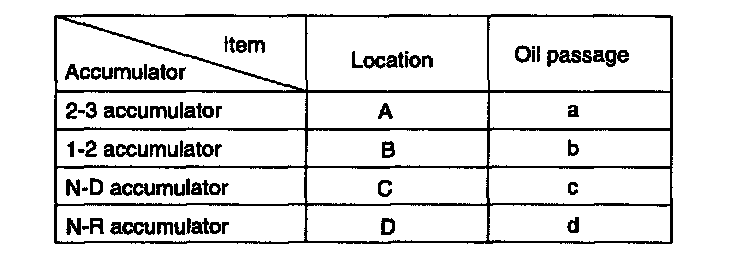 1. Remove accumulator pistons and springs from clutch housing by applying compressed air through oil passage as shown in figure.