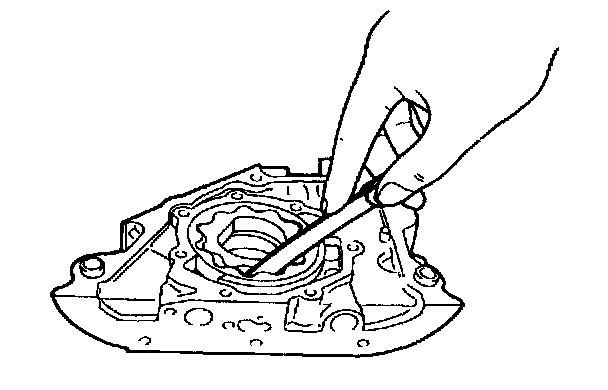 1. Remove oil seal using a screwdriver covered by a rag to protect sealing surface from pump cover side.