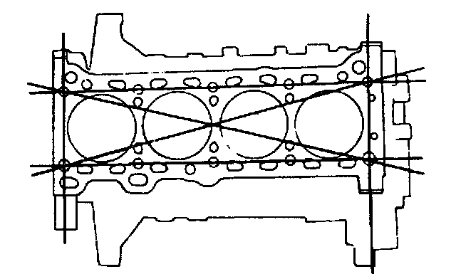 2. Check distortion of cylinder head mating surface (block deck) in six directions shown in figure.