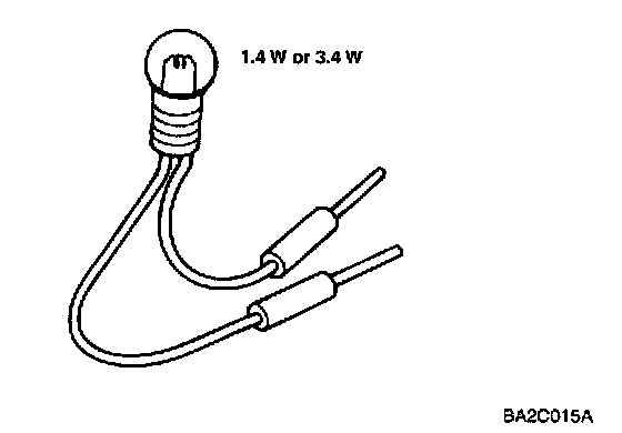 CAUTION: When checking the engine control module (ECM), never use a bulb exceeding 3.4W