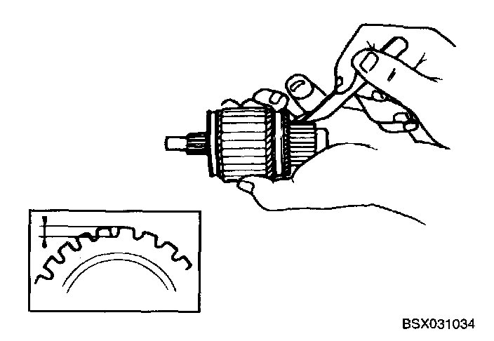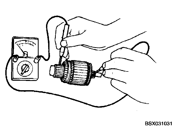 2. Check continuity between commutator and shaft with ohmmeter. Replace armature if there is continuity.