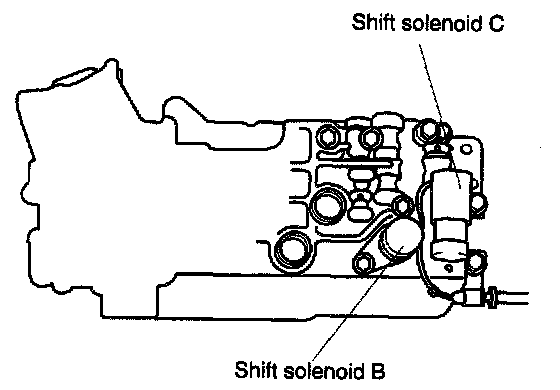 5. Remove shift solenoids B and C.