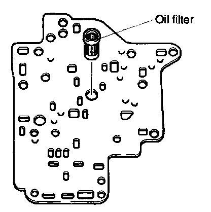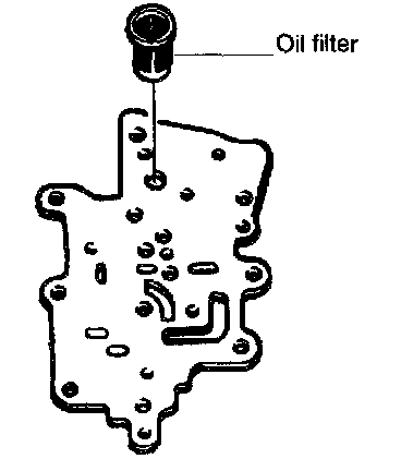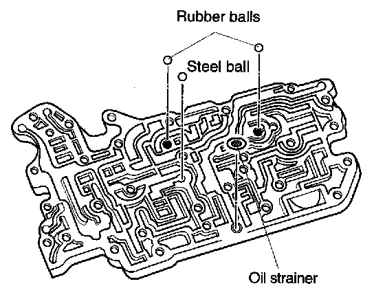 13. Remove oil strainer and two rubber balls from premain control valve body.