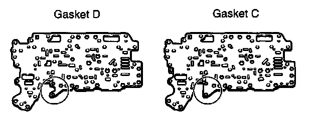 Notice: Gasket F and gasket E are not interchangeable. They are identified by their shape in area designated in illustration.