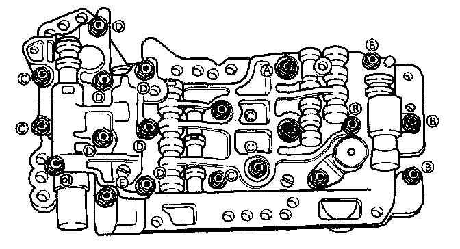 4. Set premain control valve body onto lower valve body and install seven bolts.
