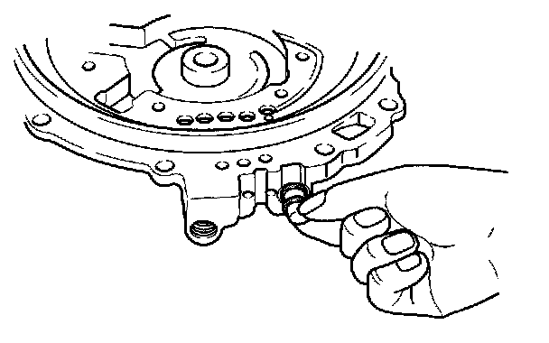 1. Install fluid pressure bypass valve spring into oil pump housing, and verify that fluid pressure bypass valve moves smoothly.