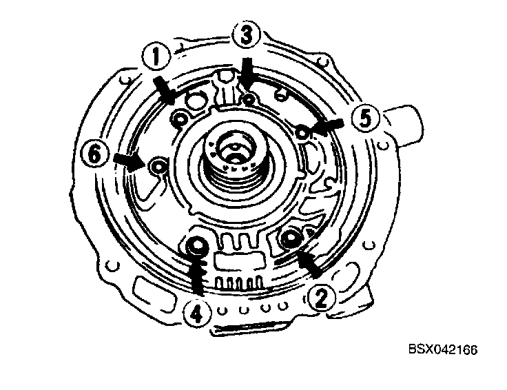 6. Tighten six bolts evenly and gradually in order shown.