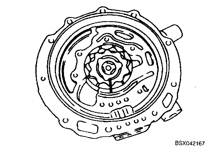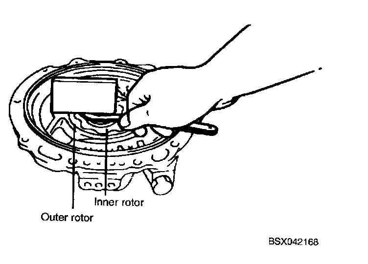 2. Measure clearance between end of oil pump housing and outer rotor and inner rotor at no less than four places along their circumferences.