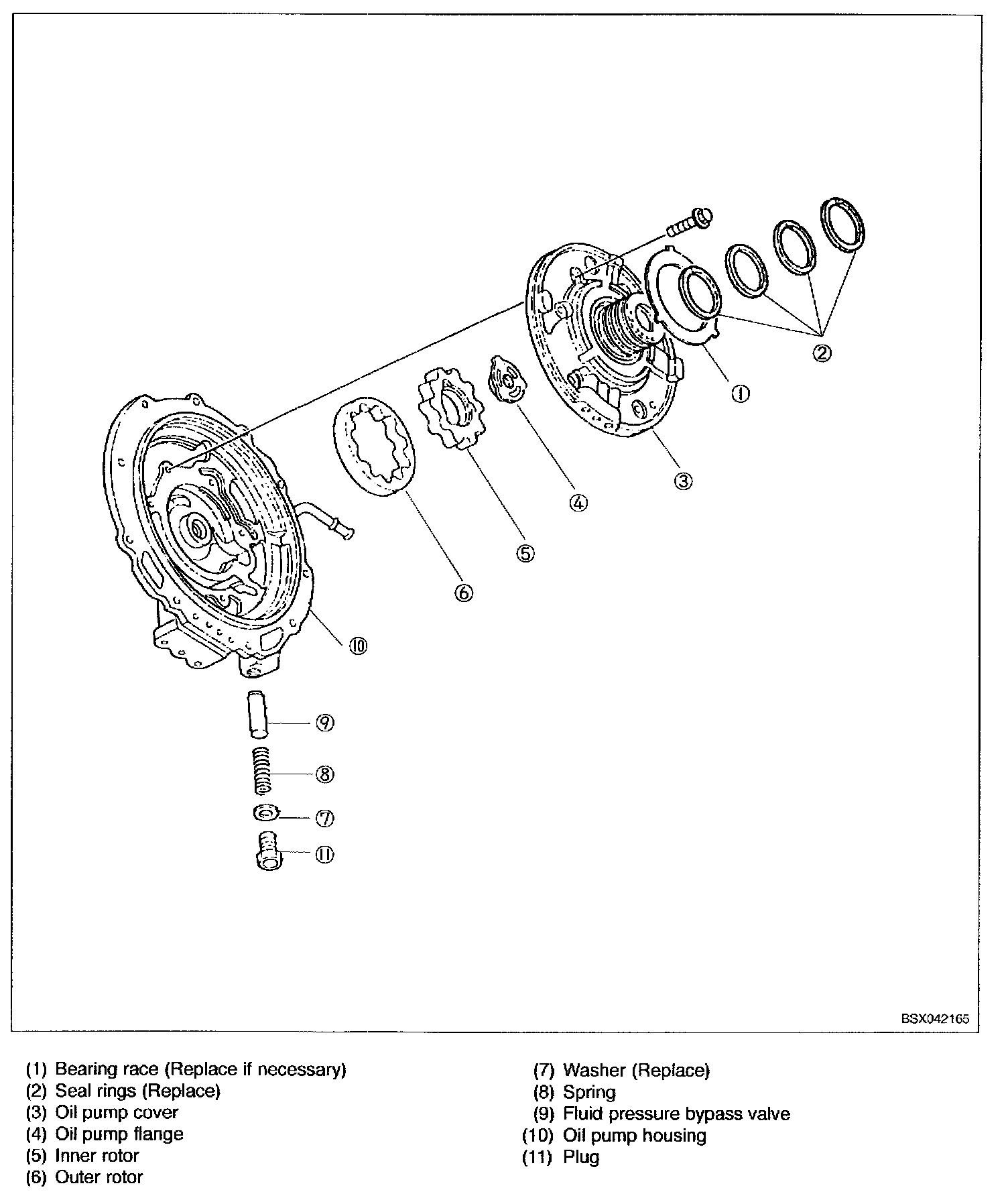 9. Apply petroleum jelly to bearing race and secure it on oil pump cover.