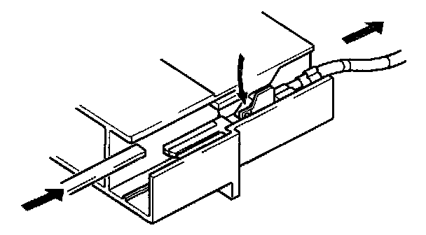1. Insert a thin piece of metal into terminal side of connector, then with terminal locking tab pressed down, pull terminal out of connector.