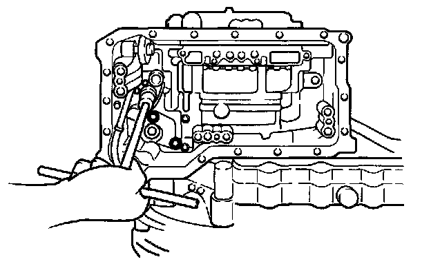 33. Align manual valve with pin on manual plate and install control valve body.
