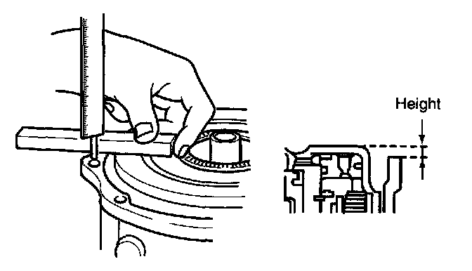 Notice: Measure height difference between reverse/forward drum and transaxle case.