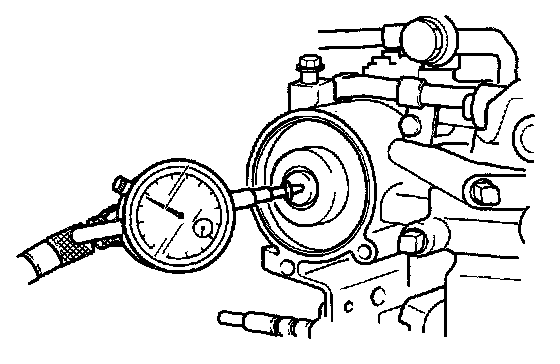 d. Set a dial indicator against piston stem