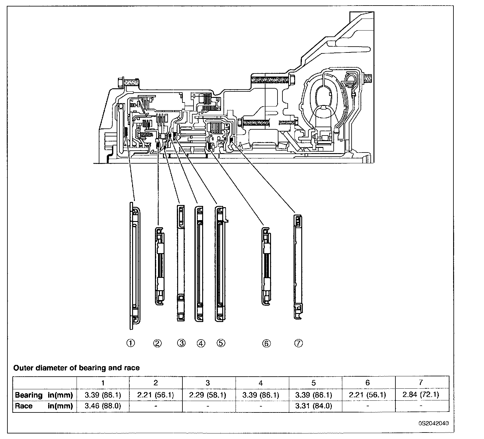Notice: Bearing and race at location 2, 3, 4, 6, and 7 are one-piece units.