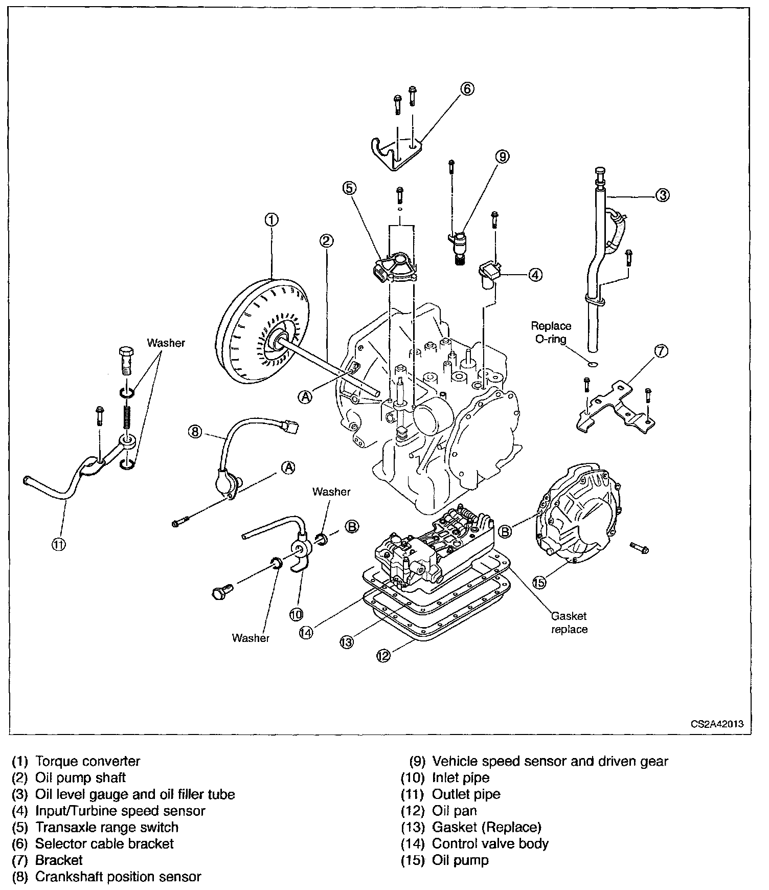 14. Install new O-rings onto converter housing