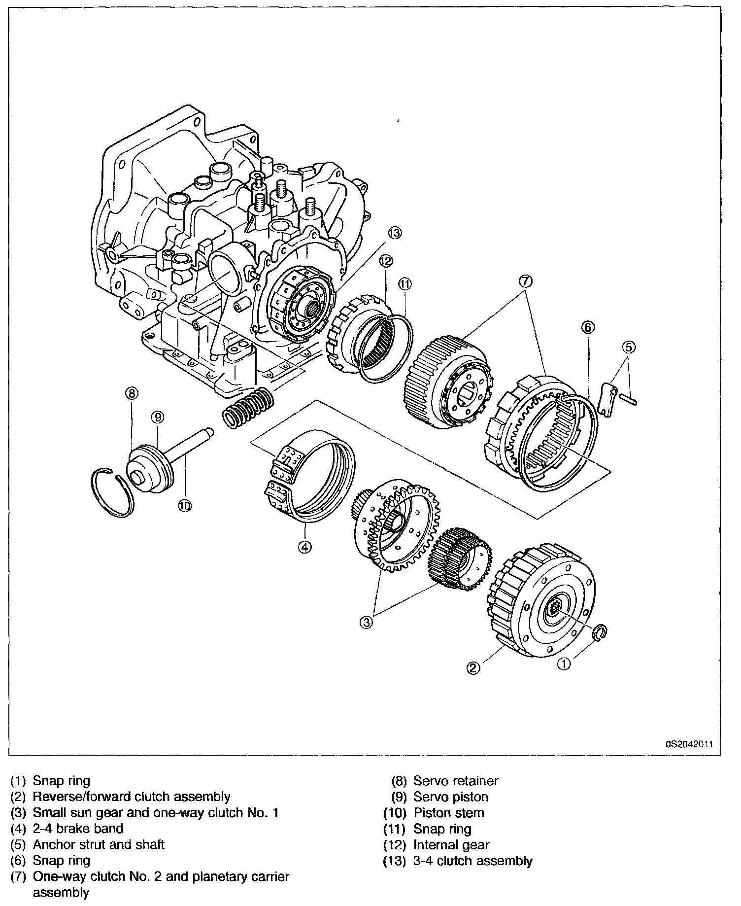 c. Position 2-4 brake band onto band servo piston stem.